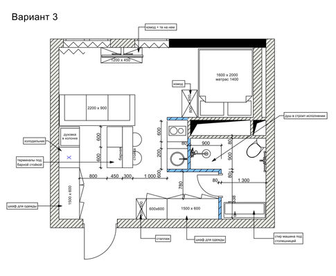 1. Вы предоставляете план с размерами + ваши хотелки по-максимуму (что должно быть на кухне, нужна ли двуспальная кровать, рабочий стол, необходима ли кладовка и т.п.)